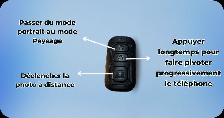 Grâce à la télécommande détachable, déclenche tes vidéos et photos en un clic, change l’angle ou passe du mode portrait au paysage sans toucher ton téléphone. Tu gardes le contrôle, même à distance